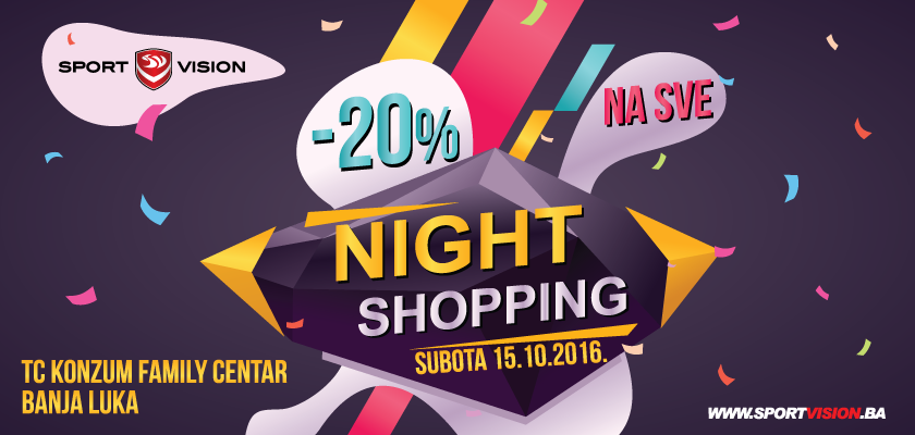 Ljubitelji mode i šopinga će uživati u sada već tradicionalnoj Noći kupovine u Sport Vision prodavnici u Konzum Family Centru 15. oktobra 2016. godine.