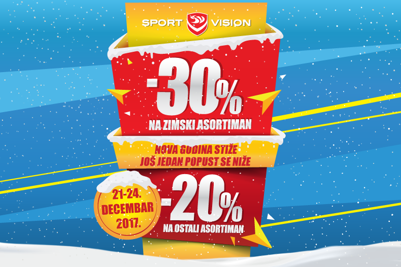 Sport Vision vas ovaj put iznenađuje sa sjajnih 30% popusta na zimski asortiman i 20% popusta na ostali asortiman.
