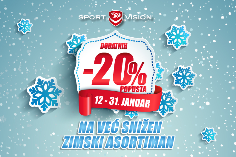 Do 31.01. u svim Sport Vision multibrend i outlet radnjama na teritoriji Bosne i Hercegovine iskoristite dodatnih 20% popusta na već snižen zimski asortiman.