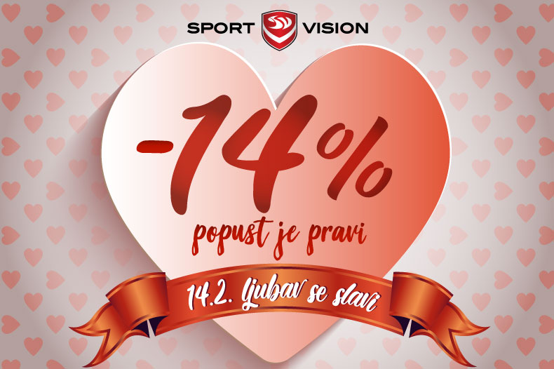 Pored aktuelnih 20% popusta na već snižene cijene artikala, u svim Sport Vision multibrend radnjama za Dan zaljubljenih očekuje vas i specijalnih 14% popusta na novu kolekciju.