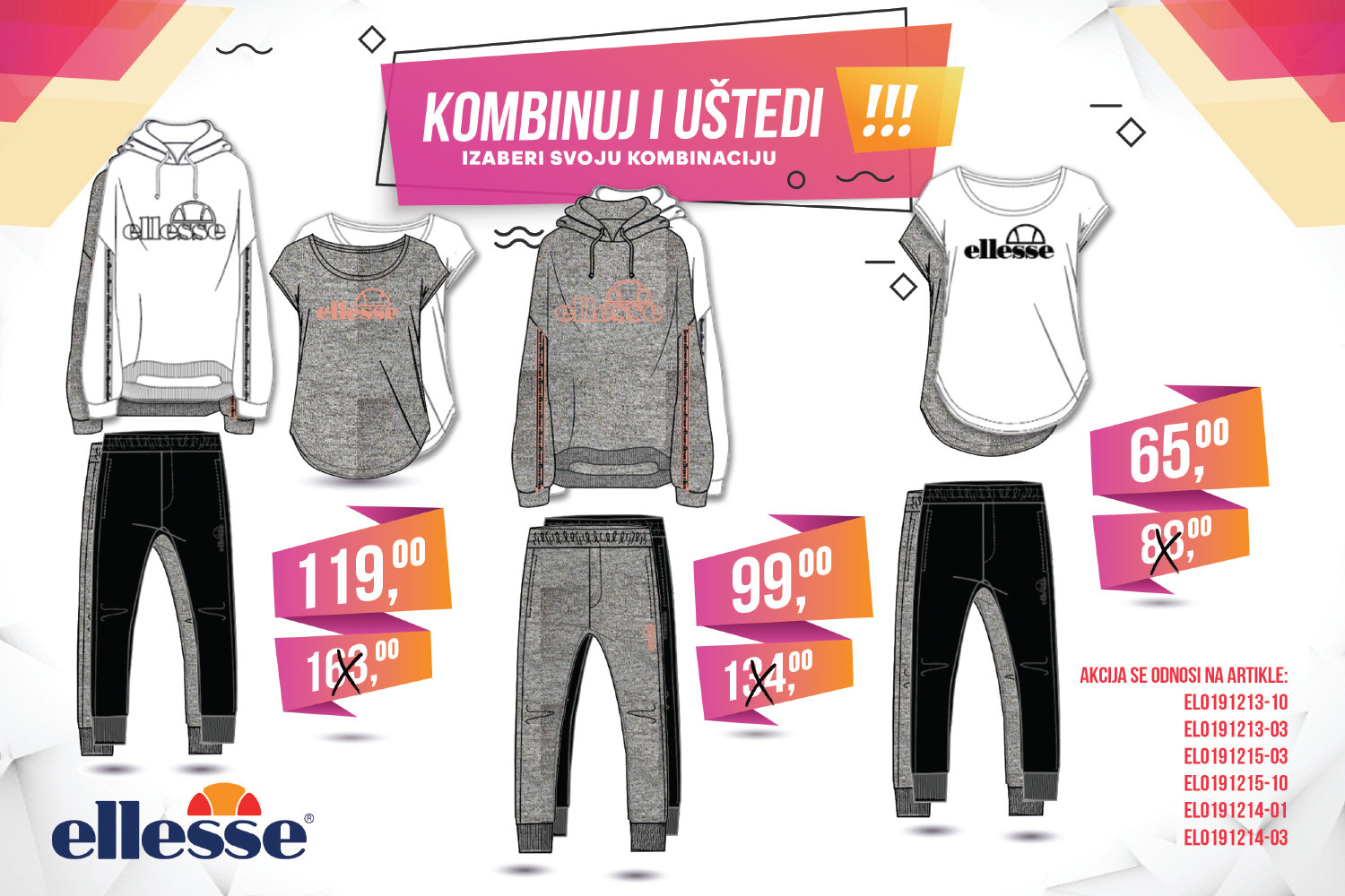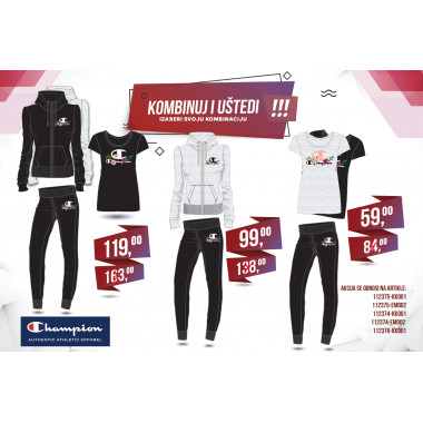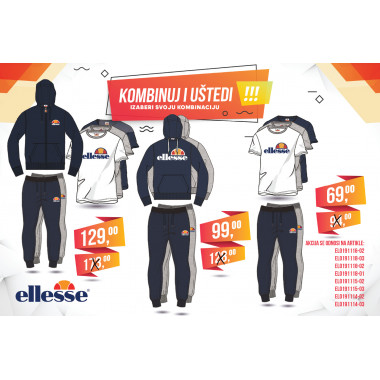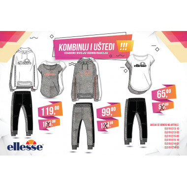 Champion muške i ženske pakete možete pronaći po cijeni već od 59KM, dok Ellesse muške i ženske pakete možete pronaći po cijenama već od 69KM, odnosno 65KM.