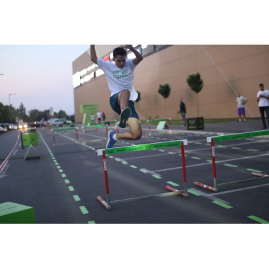 Čak 70 prijavljenih takmičara je imalo izazov da na stazi dugoj 200m, što brže dođu do cilja trčeći i preskačući prepreke visine 0.5m postavljenih na svakih 30m staze. Na stazi su se utrkivale grupe po 4 takmičara u ženskoj i muškoj kategoriji.