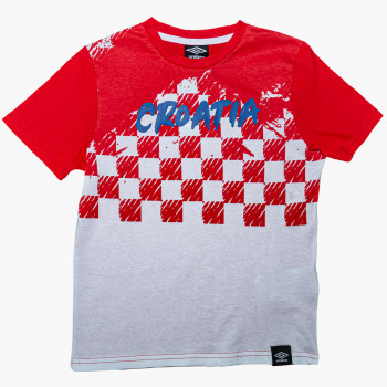 Proslavite svoj tim uz Umbro majicu za hrvatske navijače. Ova pamučna dječija majica kratkih rukava prikazuje prepoznatljivu crveno-bijelu šahovnicu sa odvažnim natpisom „Hrvatska” na grudima – savršena za fudbalske utakmice, navijačka okupljanja i svakodnevni ležeran stil.